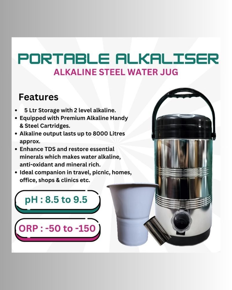 Transform your regular drinking water into pure, alkaline-rich health fuel with the Radhu Alkaliser 5.0 – a premium 5-liter stainless steel jug designed to neutralize acidity, boost energy, and support your overall well-being.